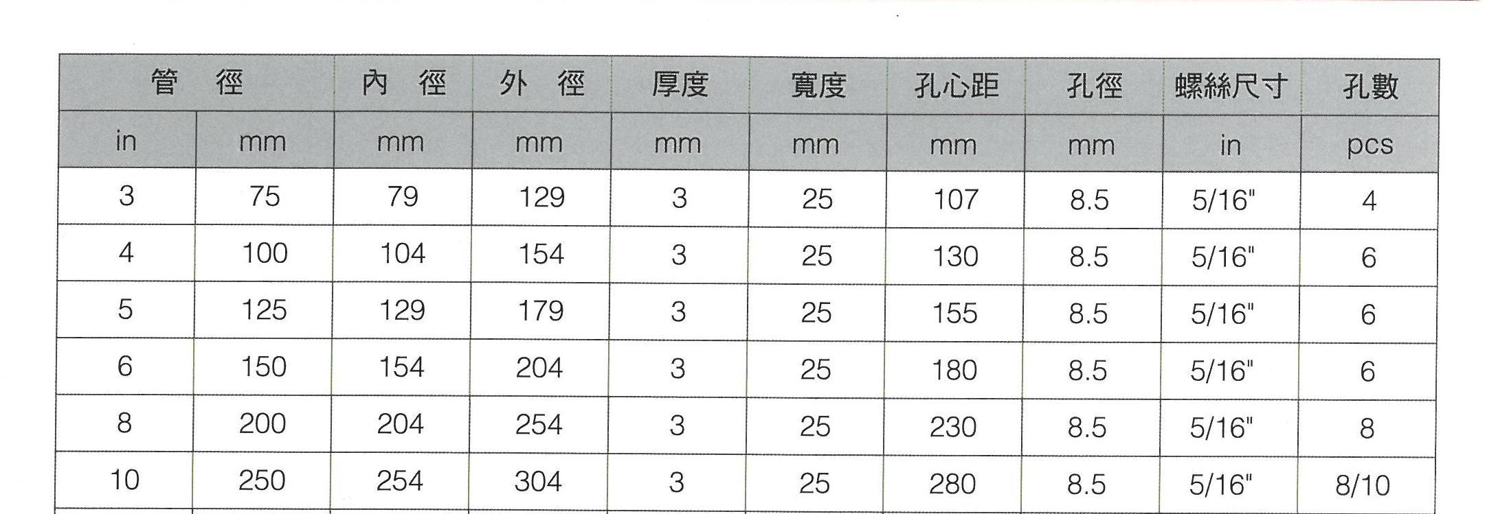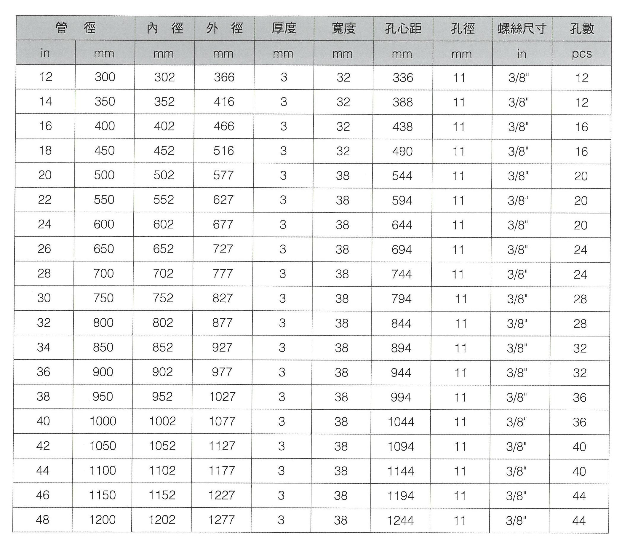 平鐵法蘭規格表